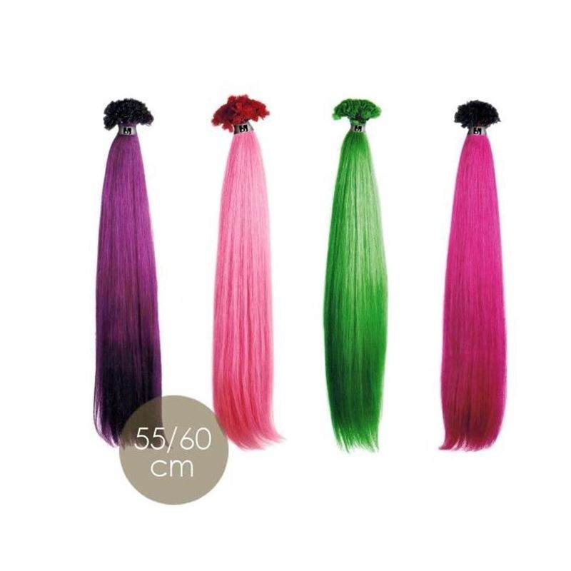 Las extensiones de queratina de 50-55cm es el largo más utilizado, perfecto para darle un toque de color efecto mechas fantasía a tu larga melena.