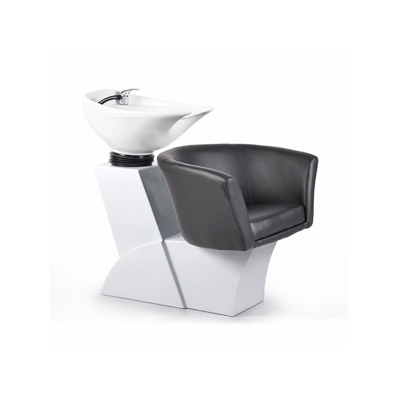 Lavacabezas con pica blanca reclinable de cerámica y grifos monomando italianos.